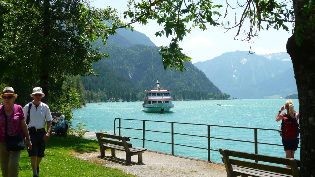 Nach einer kurzen Besichtigung des Klosters und einem Lied in der Basilika, fuhren wir weiter zum Achensee, zum Brunch beim Fischerwirt in Achenkirch. Gestärkt ging es aufs Schiff zur Fahrt über den Achensee, die Haare wehten im Sonnenwind, gesungen wurde aus vollen Kehlen, sogar einige Passagiere summten munter mit.
