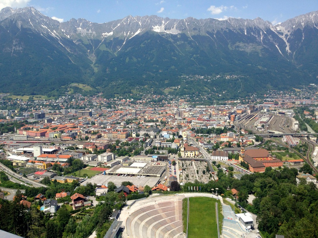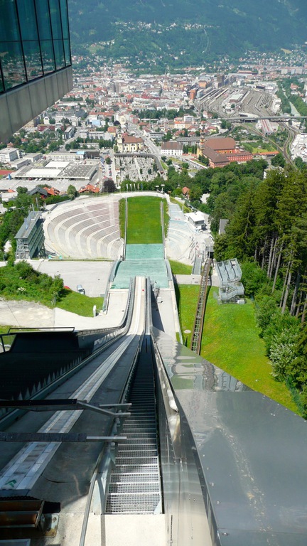 Von hier oben hat man einen atemberaubenden Blick über Innsbruck, so wie ihn auch Sven Hannawald hatte, als er den noch heute gültigen Schanzenrekord von 134,5 m sprang.