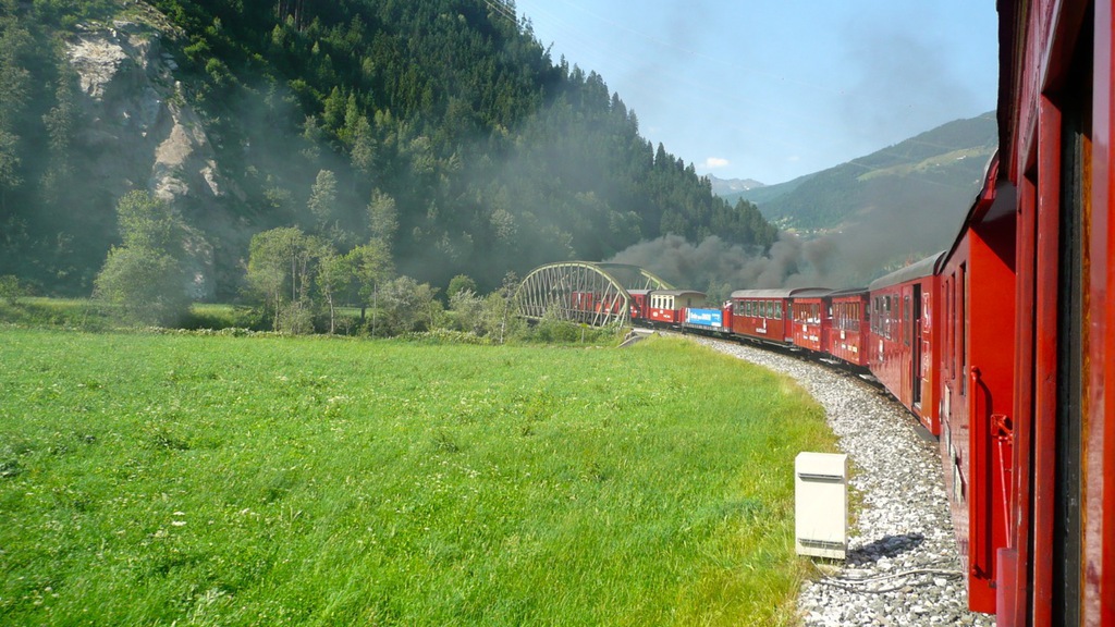 Schwer musste die alte Lok arbeiten und blies dabei viel schwarzen Ruß in die idyllische Landschaft, deren Vorbeiziehen wir sehr genossen.