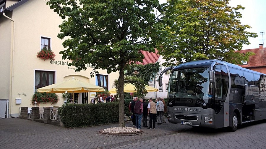 Dieser erste Reisetag geht nun mit der Ankunft beim Gasthof Zum Grünen Baum seinem Ende entgegen. Die Zimmerzuteilung mit Doppelzimmern für Paare geht zügig vonstatten.