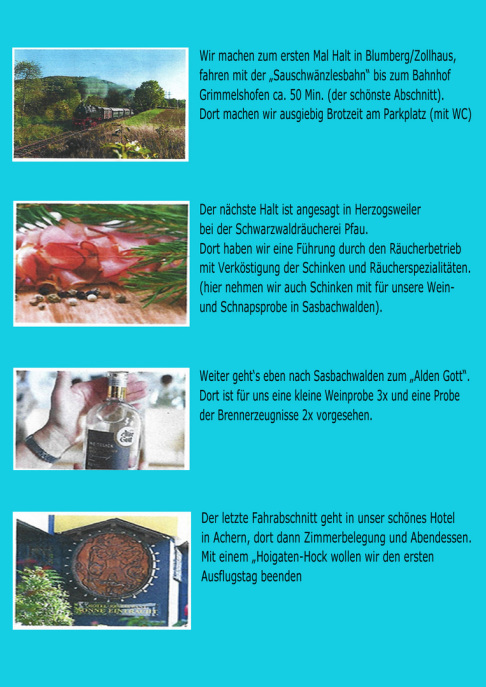 Nicht nur, dass wir wieder bewundern konnten, wie schön unsere Heimat und ein Abstecher ins benachbarte Elsass sind, sondern auch, wie vielfarbig und lebendig sich Begegnungen mit den Menschen in den von uns besuchten Regionen gestalteten.