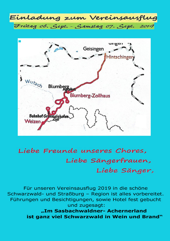 So kann man mit nur acht Worten in zwei kurzen Sätzen beschreiben, wie einfallsreich und und gründlich unsere bewährten Chorausflugs-Planungsexperten Georg und Annemarie Wagner es wieder geschafft haben, den unver-zichtbaren Jahresausflug zu einem wahren Erfolgserlebnis zu machen.