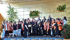 Nach diesen ersten drei Liedvorträgen des Männergesangvereins traten die Sängerinnen und Sänger der Chorgemeinschaft Sankt Mang auf die Bühne, um im Wechsel mit dem Männergesangverein das Konzert fortzusetzen. Zusammen mit der Chorleiterin Eva Brunner richtete auch Vorstand Dolf Balla von der Chorgemeinschaft ein Grußwort an die Konzertbesucher.