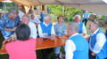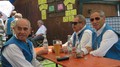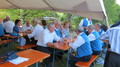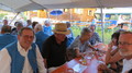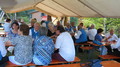 Herzliche Begrüßung zwischen Vorständen und Chorleitern. Freundlich-neugierige und erwartungsvolle Blicke von den bereits zahlreich anwesenden Festgästen, die im Schatten von vielen Sonnenschirmen und einem großen Festzelt darauf warten, dass es losgeht.