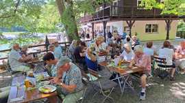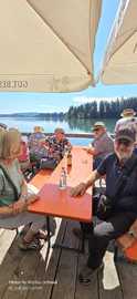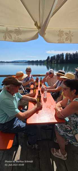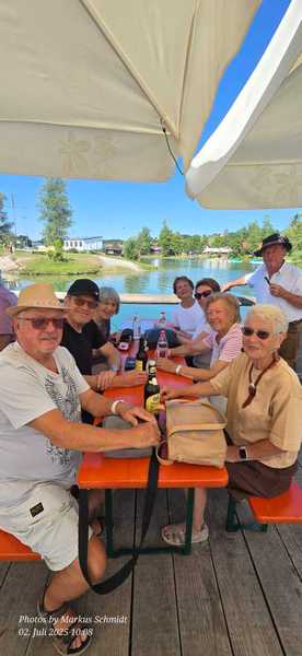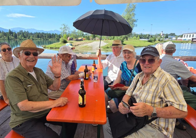 Nach der Floßfahrt führte die Fahrt zum Waldgasthof Seerose in Fuchstal, Ortsteil Welden. Hier genossen alle gemeinsam ein köstliches Mittagessen im Freien, unter schattigen Bäumen am See. Besonders beliebt waren die frisch zubereiteten Forellen, die hier als Spezialität serviert wurden.