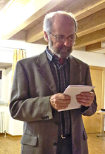 Herr Pfarrer Josef Gomm beginnt das Festprogramm mit dem Vortrag einer lesenswerten Weihnachtsgeschichte von Josef J. Link. Der Titel lautet: Der ungebetene Gast .