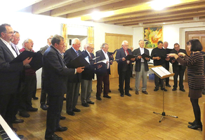 Dazu stehen die Sänger anfangs in der üblichen Choraufstellung, bilden dann aber auch – und das ist neu - in einer Reihe stehend einen großen Halbkreis um die Zuhörer... Reicher Beifall belohnt diesen Auftakt zu einer erfolgversprechenden, weiteren Chorarbeit unter der neuen Leitung.
