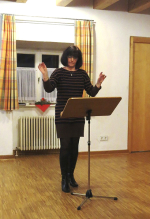 Sodann wendet er sich der erstmals bei dieser Chorweihnachtsfeier anwesenden Frau Sabine Unger zu und stellt sie der erwartungsvoll und neugierig blickenden Versammlung als unsere neue Chorleiterin vor. Die Anwesenden danken mit einem herzlichen Begrüßungsapplaus.