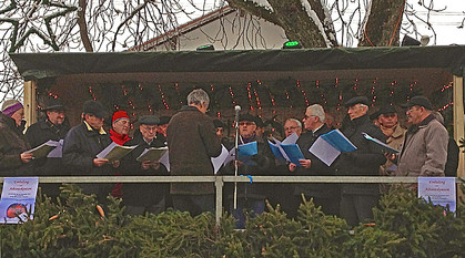 eine erwartungsvolle Zuhörermenge und belohnte unsere Liedfolge mit freundlichem Applaus. Bei der Kälte war das Applaudieren oft nicht ganz einfach: Linke Hand im Handschuh, rechte Hand hält einen